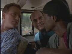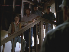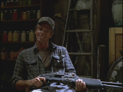 Back to the useless subplot with the rednecks, and we find the head redneck telling Chakotay and B’Elanna that the gubmint's BAD, m'kay! I'd relate his speech, but it's just too stupid. The, uh, irony comes at the end of the scene when the Feds actually show up to shut down their Waco Compound, or whatever the hell they've got going on. The writers have turned on their improbability engine, though, as Tuvok and The Doctor come to rescue them, right when the Feds arrive. A mild firefight ensues, but it's nothing really worth writing about.