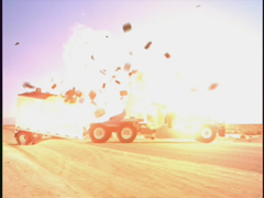 Voyager's shuttle comes over the hill and destroys the truck in a truly horrific CG explosion. I mean, it's first season Babylon 5 bad. The cab disappears in a shower of perfectly square fragments flying off. Oh, and when if you watch Paris look at the shuttle, he doesn't look anywhere near it. He looks a good twenty feet below it.