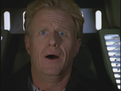 So the rednecks come in and tell Chakotay that he has a purdy mouth, I mean that they were sent in their stealth plane by the Federal Government, and that the Federal Government is "The Beast" come to get them. Oh brother.